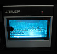 滅菌消毒処理をした器具をステリライザーにて保管しております。